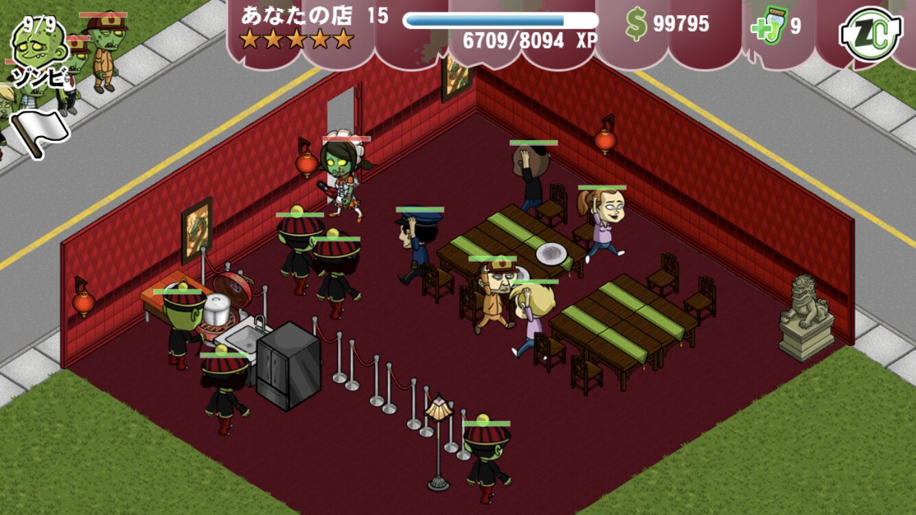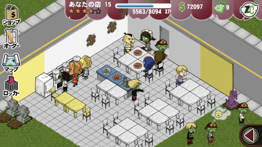 レベル上げの方法は調理・襲撃でゾンビ、客を倒す(ごく少量)、あとは家具を買っても経験値がもらえます。